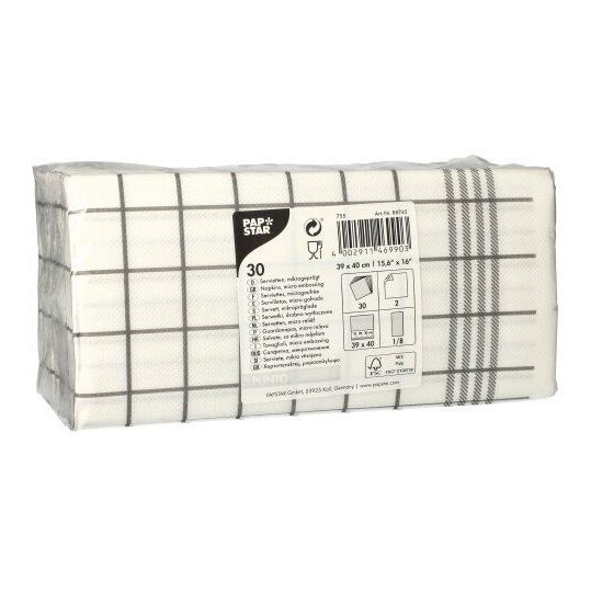 Lautasliinat PUNTO 39 x 40 cm harmaa Keittiöpyyhe 30 kpl mikrokohokuvioitu, joka tekee lautasliinasta miellyttävän pehmeän ja mukavan vain kahdella kerroksella.
