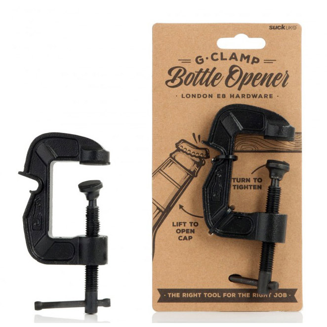 G-puristimessa on sisäänrakennettu tölkinavaaja, joka on helppo kiinnittää pöytään. Täydellinen työpajaan tai kun on aika kattaa pöytä buffetaamiaiseen. Kiinnitä G-klipsi hyllyyn, pesualtaaseen tai minne vain tarvitset todella hyvän tölkinavaajan, joka avaa pullon nopeasti.