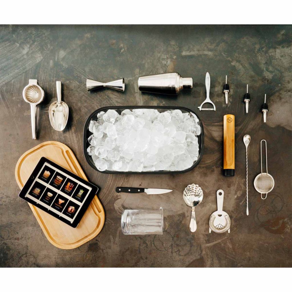 Kaikki nämä työkalut toimitetaan kätevässä kangaslaukussa. Jotta juomasi pysyy kylminä ja tuoreina, mukana on myös jääkauha ja jääkauha, jotta voit tarjoilla luomuksesi täydellisessä lämpötilassa.