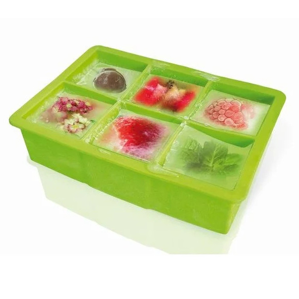 Silikoninen jäämuotti, suunniteltu luomaan 6 suurta ja vaikuttavaa jääpalaa. Täydellinen niille, jotka haluavat lisätä juomiinsa ripauksen eleganssia ja luovuutta!