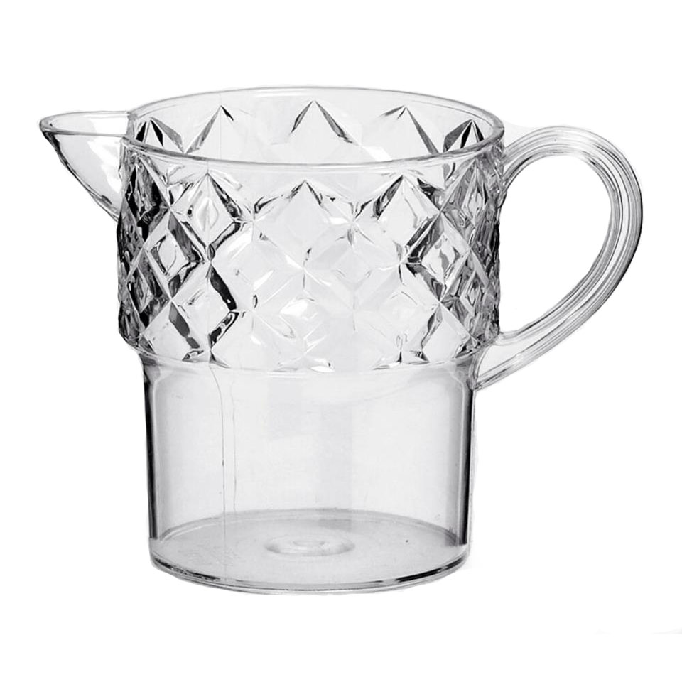 Muovinen kannu 1 litran kristallinkirkas retromuotoilu, joka on vakaa pöydällä ja sopii veden, mehun, mehun ja monen muun säilytykseen ja tarjoiluun.