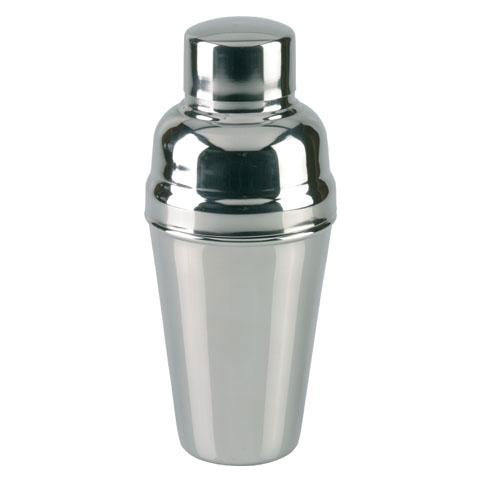 Kolmiosainen cocktailsekoitin, kiillotettu. Näyttävä, kiillotettu ruostumattomasta teräksestä valmistettu shaker, jonka kannessa on siivilä. Laadukasta ammattimaista mallia.