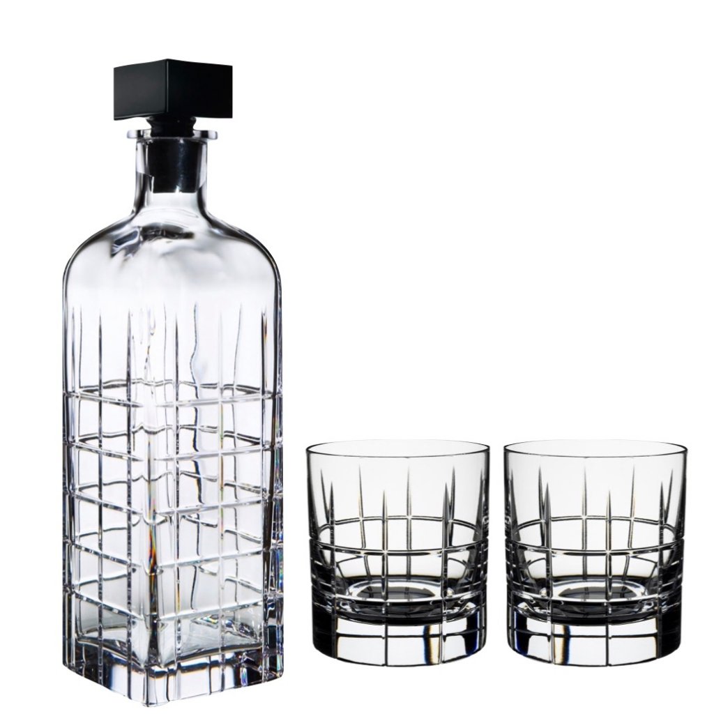 Street-paketti - 2 lasia ja 1 karahvi. Orrefors Street -sarjan suunnitteli suunnittelija Jan Johansson vuonna 2006 tavoitteenaan luoda karahvin selkeät linjat, jotka muistuttavat modernia kaupunkiympäristöä. Orrefors Street on karahvi, jossa on selkeät kontrastit ja linjat. Mustat yksityiskohdat ja pystysuora muotoilu tuovat mieleen pilvenpiirtäjiä ja vilkkaita katuja. Viskikannu niille, jotka haluavat tuntea olonsa keskustassa. Yhdessä tyylikkäiden viskilasiensa kanssa Street-sarja on todella tyylikäs yhdistelmä, joka kiistattomasti lisää sisältönsä elämystä.