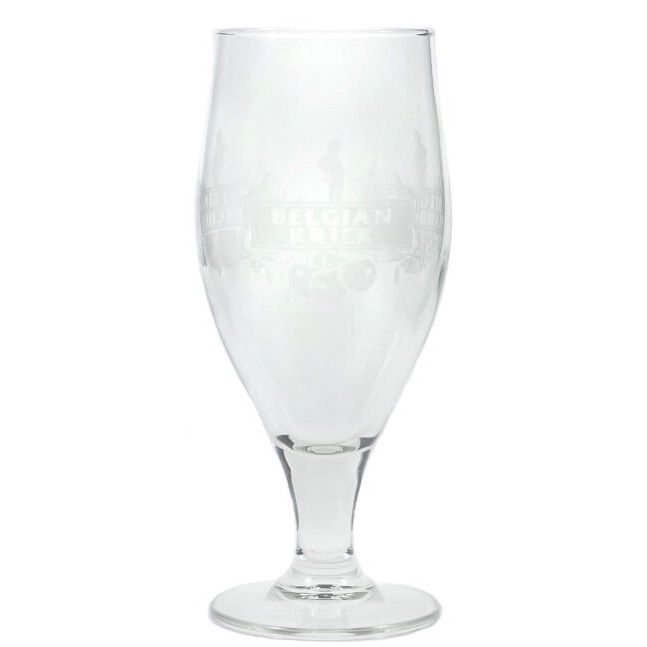 Belgialainen Kriek-olutlasi. Brasserie Lefebvre on panimo, jonka lyyrassa on monia kieliä. Tämä olutlasi on omistettu heidän hedelmäolutsarjalleen. Olutlasi on komea olutpalkinto, jonka kolmella sivulla on himmeät tunnukset; Belgialainen Kriek, belgialainen Framboise ja belgialainen Peche, joka tarkoittaa kirsikkaa, vadelmaa ja persikkaa.