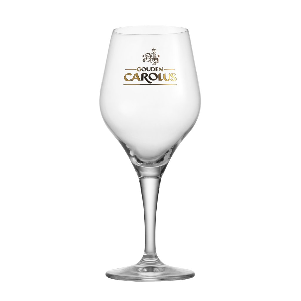 Gouden Carolus -olutlasi jalan. Mechelenin Het Anker -panimon Gouden Carolus -sarja on tunnettu korkeasta laadustaan ​​ja erittäin täyteläisistä makuistaan. Tässä komeassa lasissa korkealla pohjalla on hienosti suunniteltu kuppi, joka esittelee sekä maun että tuoksun esimerkillisesti.