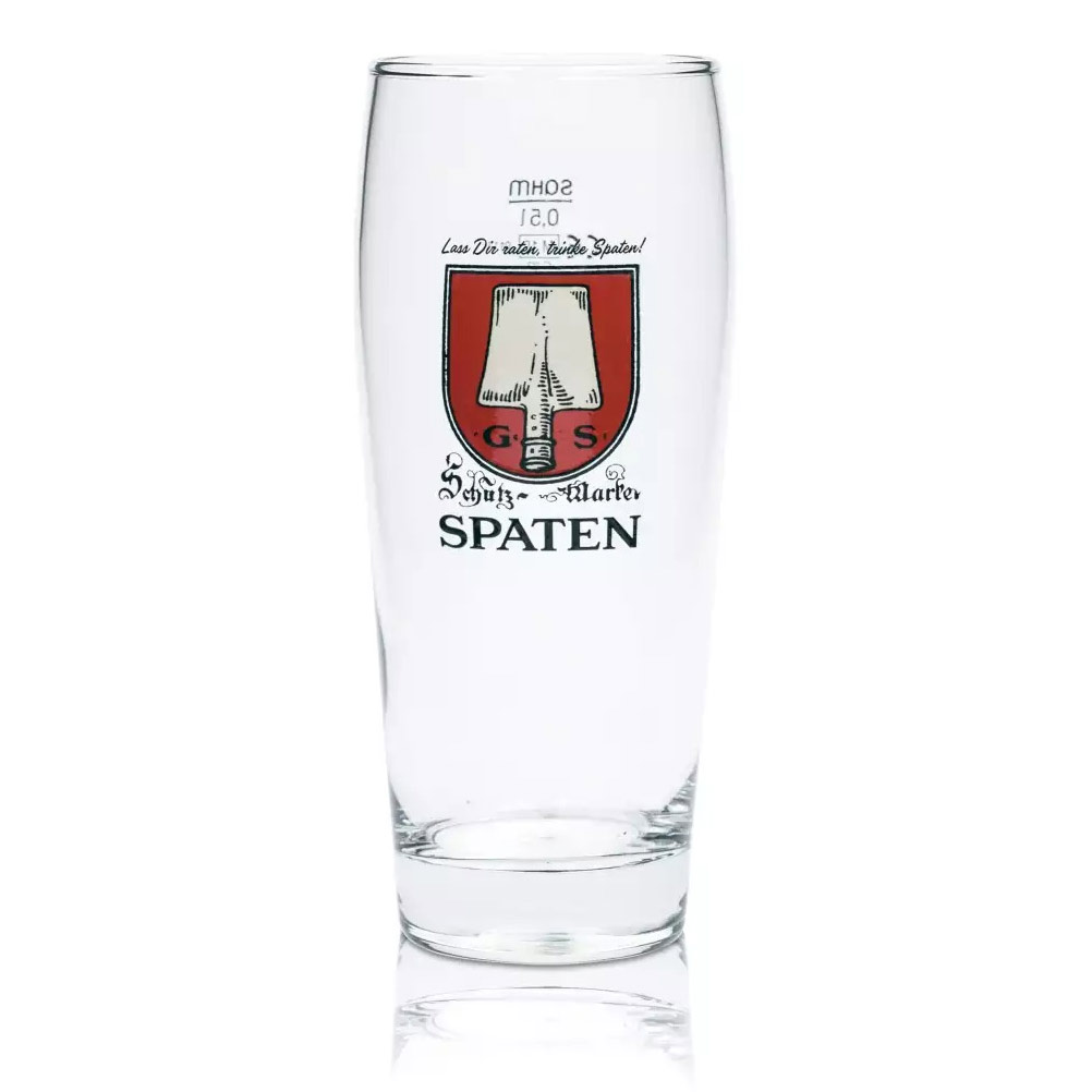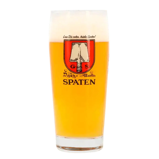 Spaten-olutlasi 50 cl kuuluisalle baijerilaiselle lagerille, jonka tunnus on lapio. Spaten tarkoittaa vain lapiota; Saksalainen ja heidän on tietysti perinteinen mallaslapio.