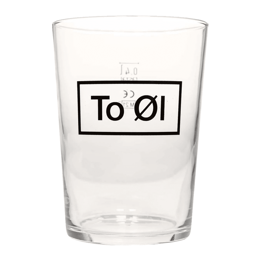 Lasissa on To Ølin tunnusomainen logo ja 40 cl -merkintä, jossa on tilaa vaahtokruunulle.