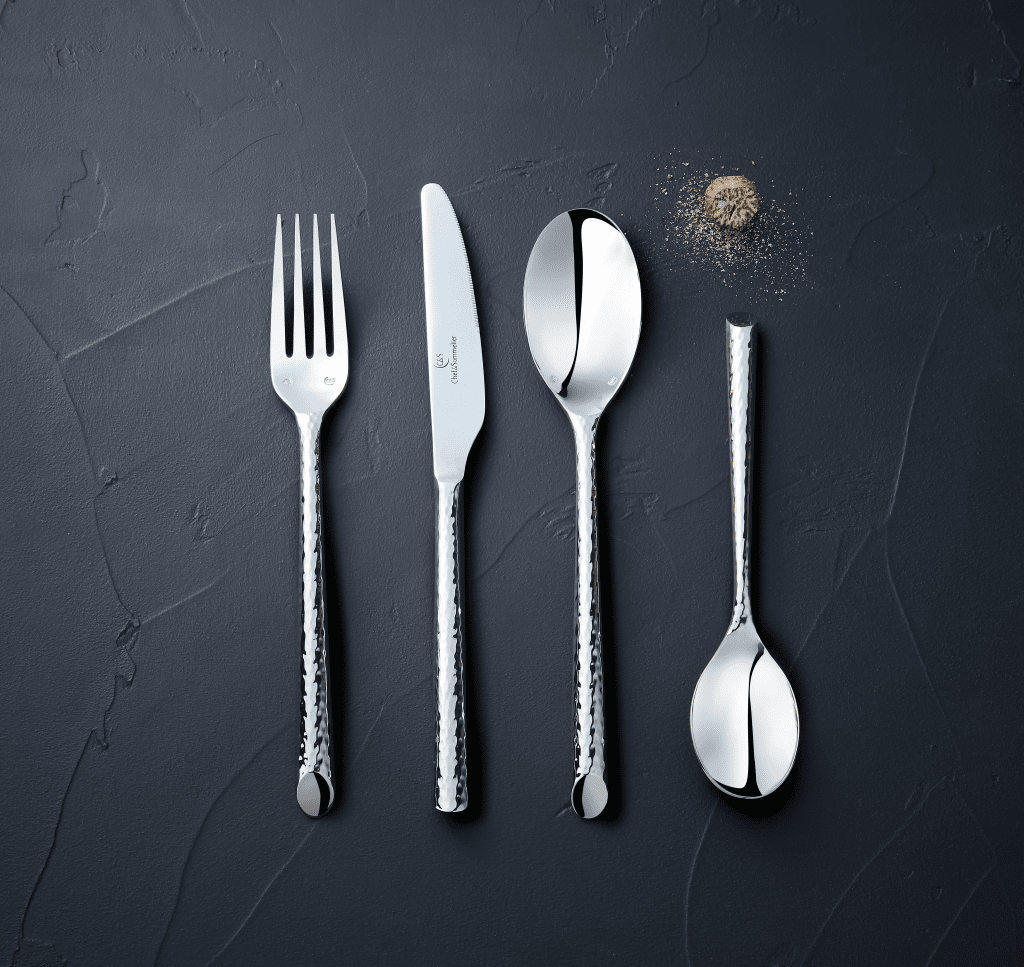 Chef & Sommelier Acoma-sarjassa yhdistyy tyylikäs muotoilu ja hienostunut vasarapinta. Ihanteellinen ruokailuvälinesarja moderniin ruokapöytään.