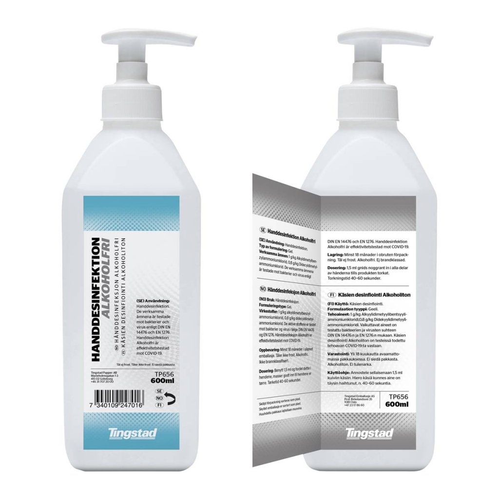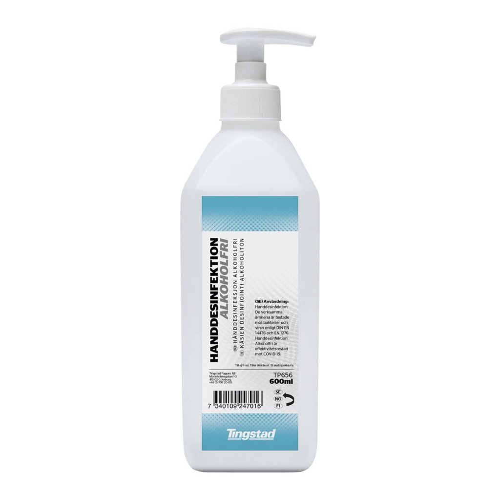Käsien desinfiointi alkoholiton 600 ml pumpulla, jotta voit helposti annostella halutun määrän, kun haluat desinfioida käsiäsi enemmän.