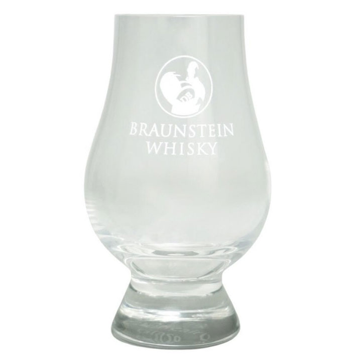 Braunsteinin viskilasi Glencairn. Vuodesta 2005 lähtien viskiä on tislattu Køgen kylässä Tanskan Seelannissa. Braunstein on perheyritys, joka yhdistää viskin tislauksen oluen tuotantoon ja muiden tisleiden tuotantoon. Perustamisestaan lähtien tämä tislaamo on pyrkinyt tuomaan esiin tuotteidensa ainesosien puhtaat maut. Huolellinen työ, joka tuotti asteittain eleganttia viskiä, jolla on selkeästi erottuvia makuja, mutta selkeästi yhteissävyinen. Tämä viskilasi on klassinen Glencairn-lasi, jossa on Braunsteinin logo ja se sopii täydellisesti kaikentyyppisten Braunsteinin tisleiden kanssa.