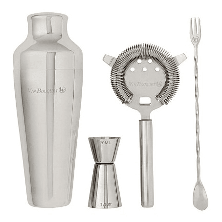 Cocktailsetti 4 osaa Vin Bouquetilta on tyylikäs ja käytännöllinen baarisetti sinulle, joka haluat valmistaa juomia tarkasti ja tyylillä. Setti sisältää kaiken tarvittavan alkuun pääsemiseksi – shakerin 50 cl, siivilän, baarilusikan ja jiggerin.