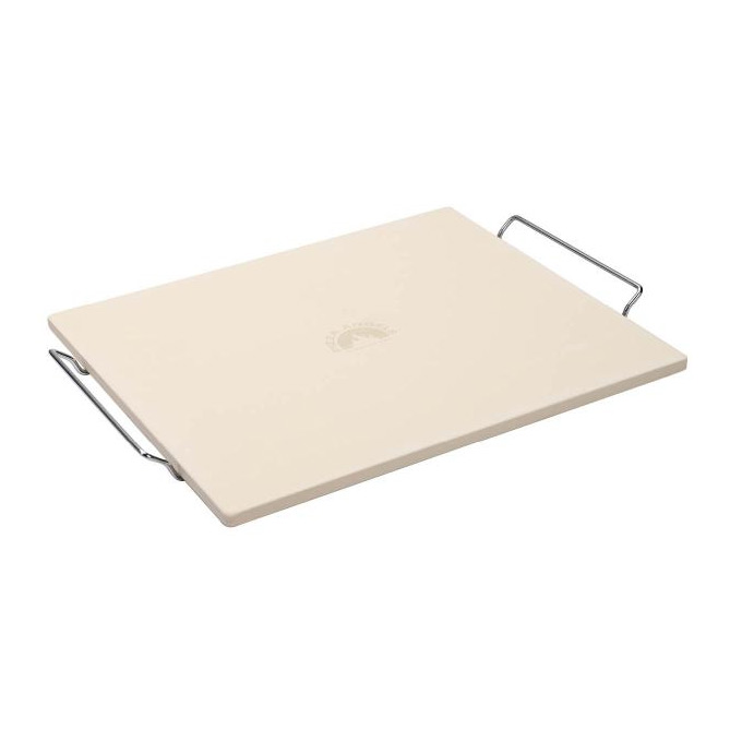 Pizza Angels Pizzakivi 40 cm beige suorakaiteen muotoinen jalustalla kromattua terästä, jota käytetään tarjoilussa. Pizzakivi kestää jopa 750 asteen lämpöä ja sitä voidaan käyttää kaasugrillissä, hiiligrillissä tai tavallisessa uunissa.