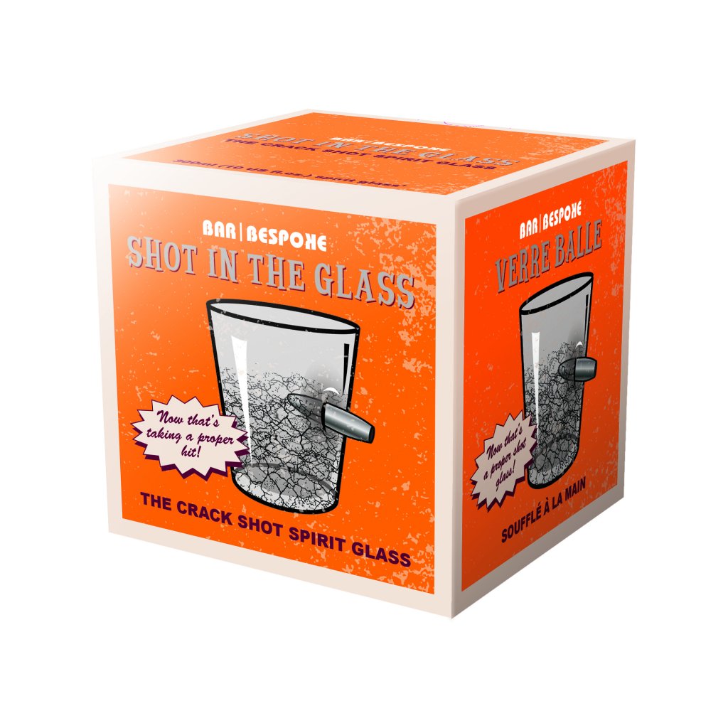 Ammuttu lasiin. Säröilty lasi, jossa on lävistetty luoti. Ota luoti ja nauti juomasi! Näytä, että olet kaupungin siistein cowboy. Vakaalla kädellä lakaisit lasin lävistetyllä luodilla - luodi, joka oli tarkoitettu sinulle?
