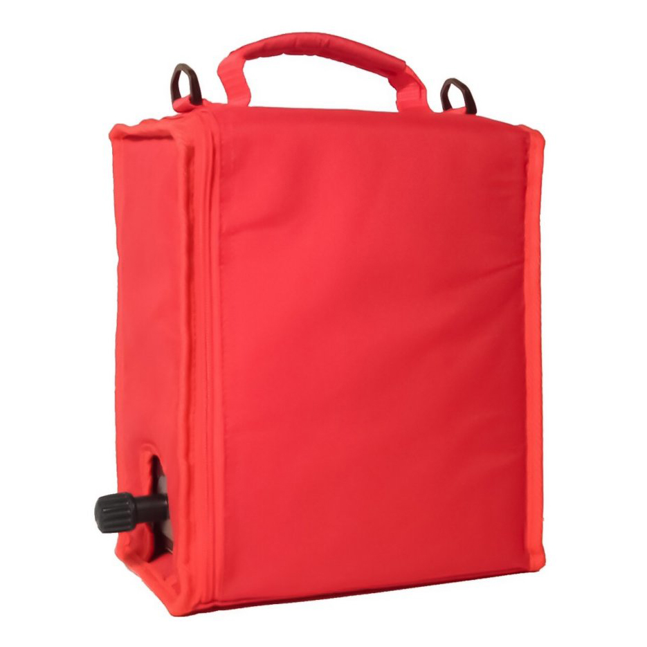 Bag in Box -kylmälaukku punainen on nerokas kylmälaukku punaisena, joka sopii 3 litran Bag in Box -laatikkoon. Laukun yläosassa on kantokahva ja siinä on erillinen aukko laatikkonosturille ja takana pieni verkkotasku. Helppo kuljettaa mukana vaikka viinilaatikko sisällä.