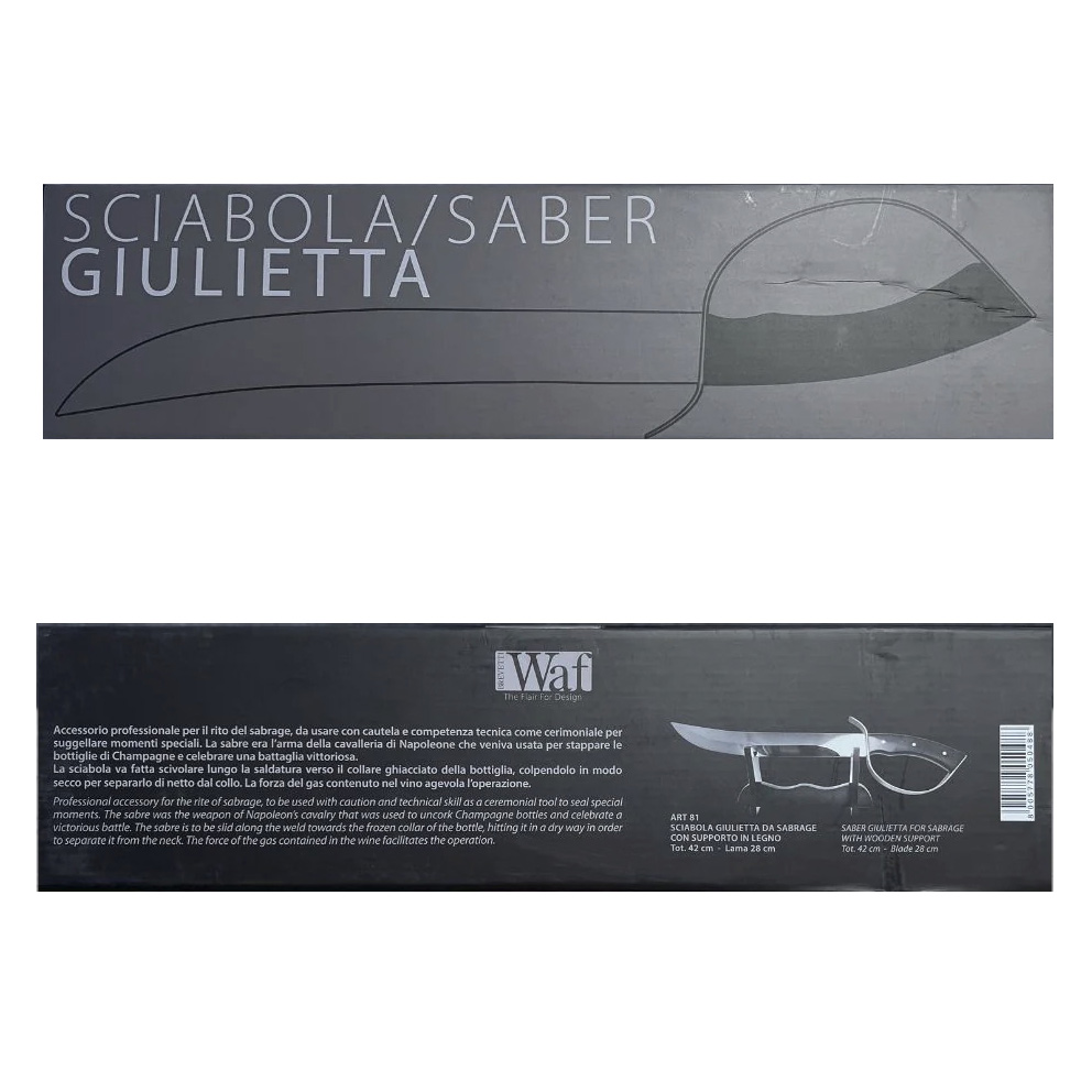 Giulietta Sabrage -sapeli ei ole pelkkä työkalu, vaan taideteos, joka nostaa jokaisen juhlan ja tilaisuuden uudelle tasolle. Tee jokaisesta hetkestä jotain erityistä – Guilietta Sabrage -sapelilla!