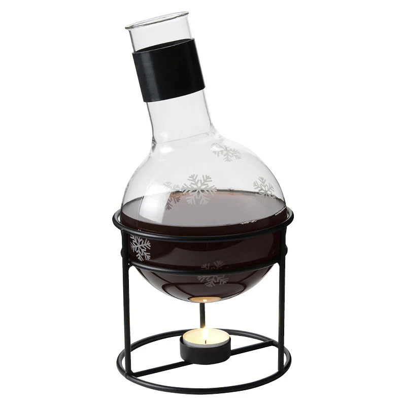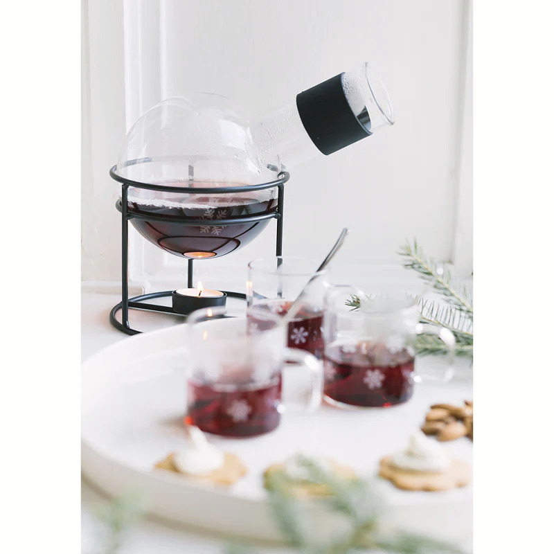 Lumitähti Glögi-karahvi, johon mahtuu täysi 1,3 litraa mustalla taotulla telineellä ja lämmittimellä yhdessä. Tarjoile ja pidä glögi lämpimänä helposti.