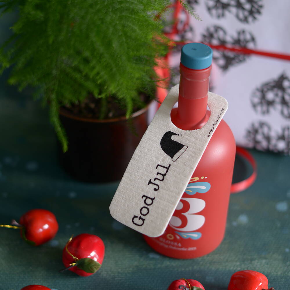 GOD JUL tiskiliinakortti on kuin antaisi pullolle, paketille tai vaikka kimpullesi äänen – ja tuo ääni sanoo "GOD JUL".