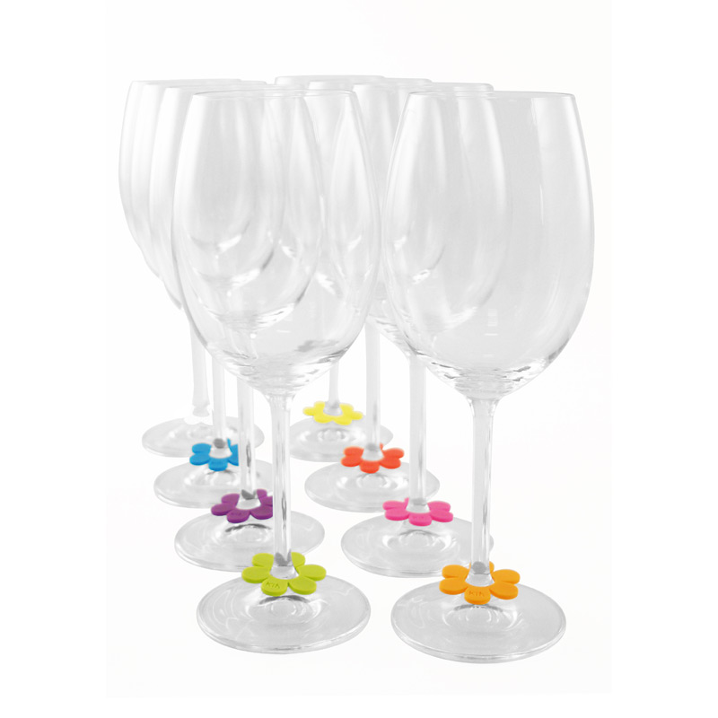 Viinilasimerkit kukkia 8 kpl silikonia, jotta voit seurata, kenelle eri lasit kuuluvat juhlissa. Valitse oma kukkasi ainutlaatuisella värillä ja aseta se viinilasillesi, jotta tiedät helposti, mikä lasi on sinun.