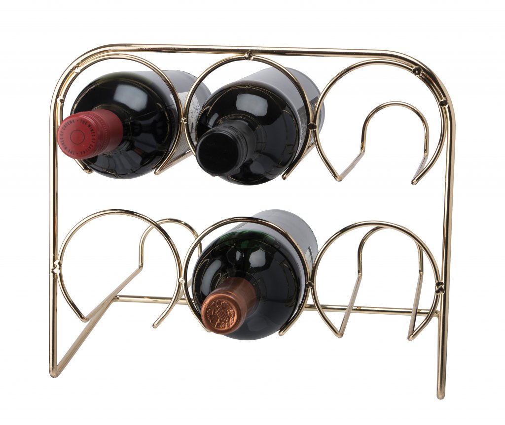 Viiniteline 6 messingiselle viinipullolle on messingistä valmistettu tyylikäs viiniteline 6 viinipullolle. Paikka koostuu pyöreistä tangoista, jotka on muotoiltu säilyttämään viiniä puolimakaamassa. Erittäin tyylikäs paikka olla keittiössä tai salongissa.
